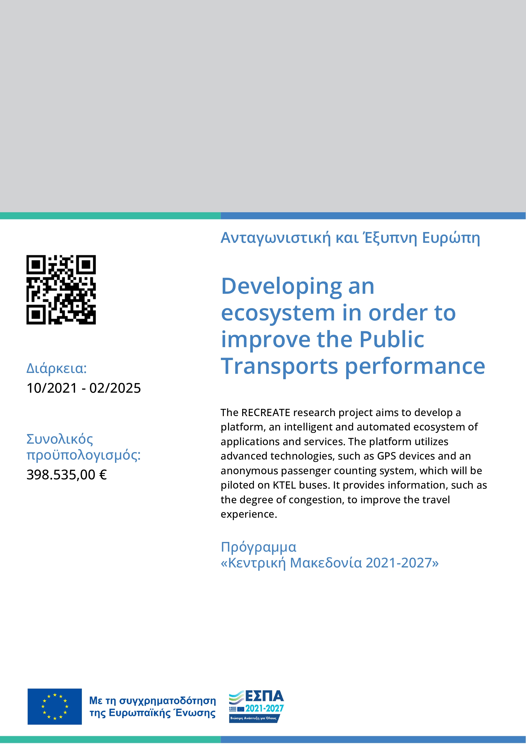Among other things, the technological product enables the real-time viewing of the occupancy of 5 buses of line 83 (Lagadas - Thessaloniki) through automatic passenger counting technologies, while it enables the calculation of 54 performance indicators (KPIs) that can improve the Strategic and Operational Planning of a public transport provider.
